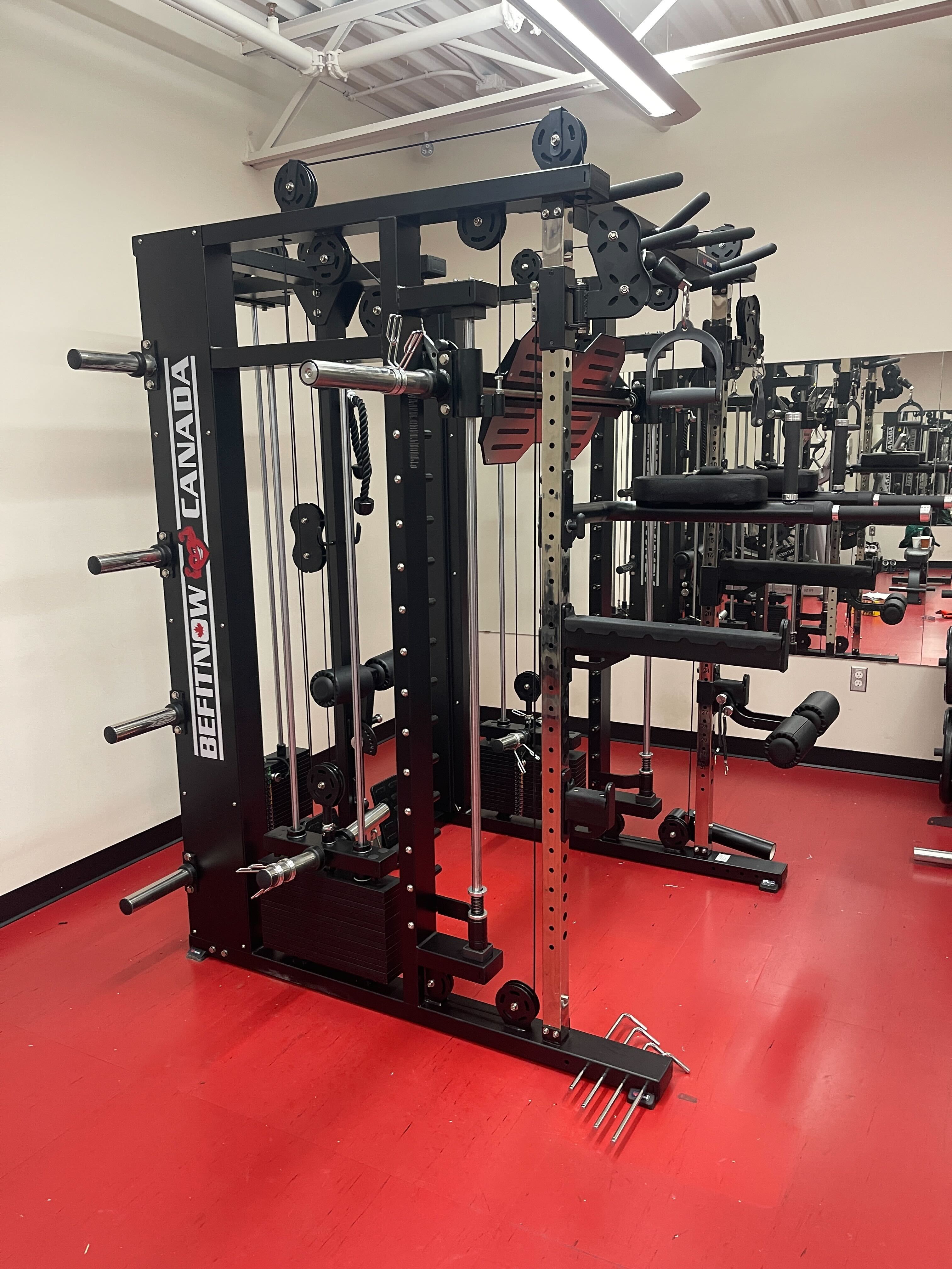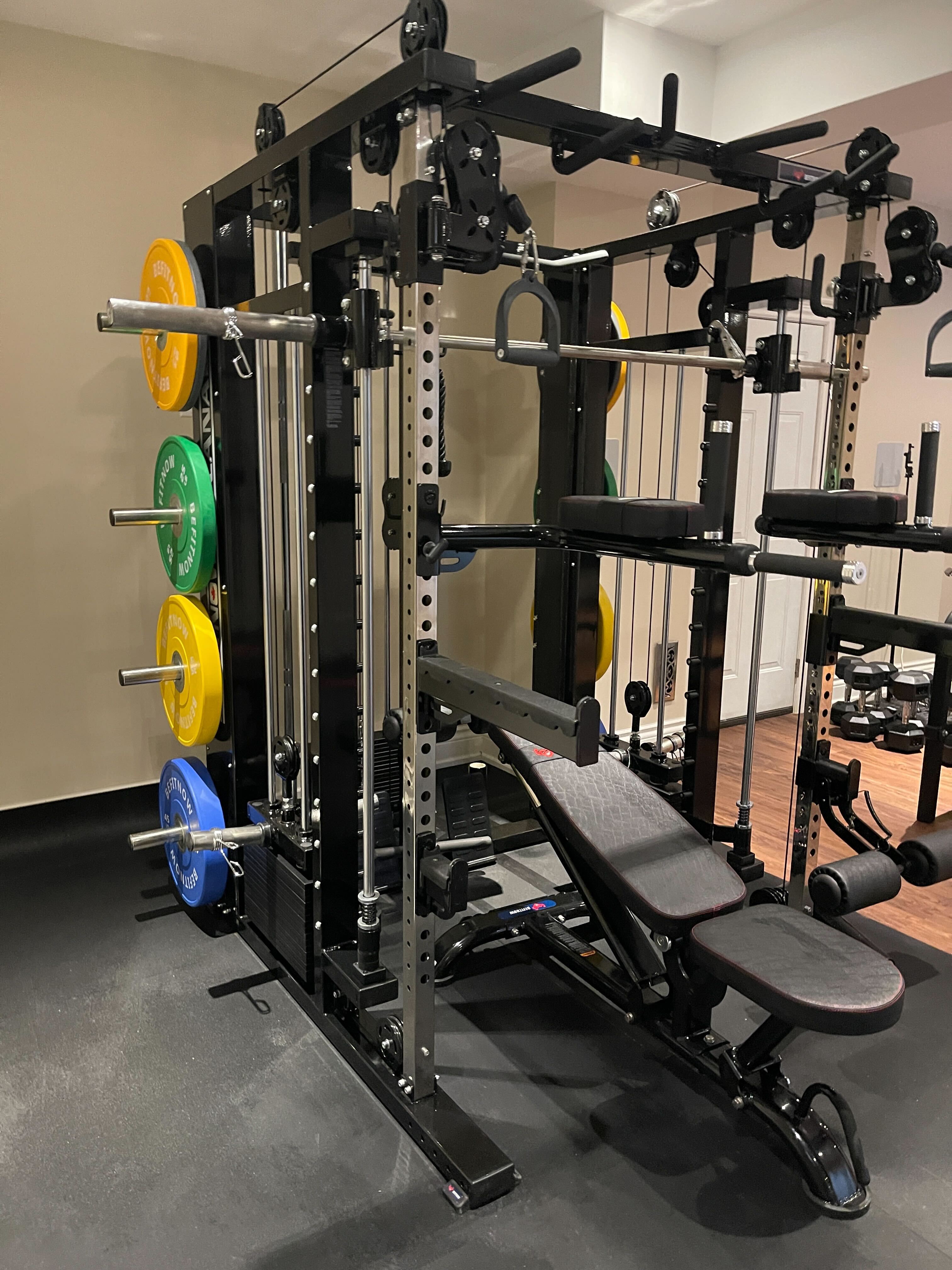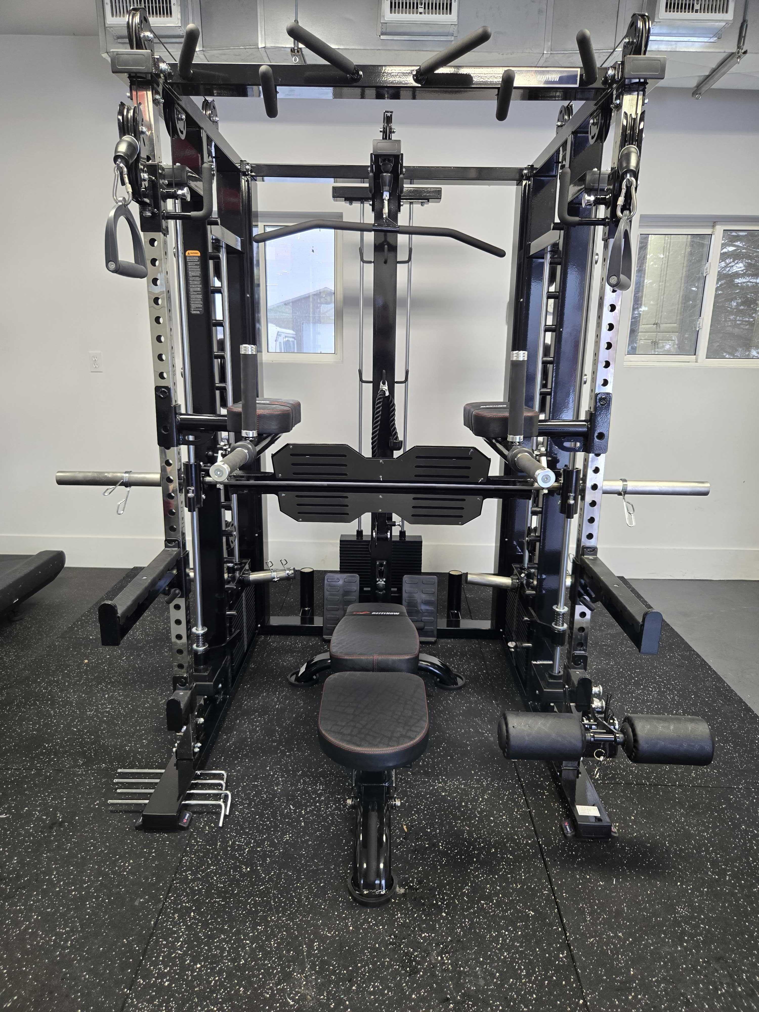 Una de las únicas máquinas del planeta que combina 3 sistemas de cables independientes con un pulldown lateral, una máquina Smith y docenas de accesorios de estilo único.
